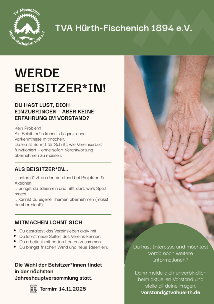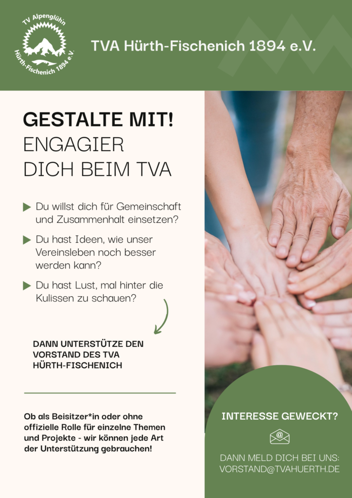 Interesse geweckt? Dann melde dich bei uns: vorstand@tvahuerth.de